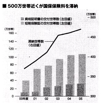 たとえば京都自治労連の試算によると、京都市では妻と子ども2人の4人家族で年収400万円の家族の場合、介護保険料も含む国保料は年額48万7020円になるという。滞納世帯増加の根本的な原因は、普通の生活では払えない重い国保料そのものにあるのだ。「この場で9万円を払わなければ保険証は出さない」役所の窓口でそう言われた前出の高田さんの妹はコンビニのATMで貯金を引き出し、2週間有効の短期保険証を発行してもらった。「兄の娘が″うちにはそんなおカネはない。サラ金から借りるしかない”と説明しても、役所の人は規則だからとしか言わない。慌ててなけなしの貯金をかき集めたんです。でも、2週間後にはさらに9万円を、その後も毎月4万円を納めろと担当者は言う。私たちはもう、目の前が真っ暗になりました」相談を受けた病院のソーシャルワーカーが、千葉市の市民でつくる「国保を考える会」に連絡し、事態が明らかになった。「千葉市ではこれまで国保料の滞納がある人も、払える額を窓口で誓約すれば短期保険証は交付されたんです。でも、国の方針が機械的、懲罰的な取り立てなので、住民が黙っていると、資格証明書の交付などはどんどん厳しくなるおそれがあります」国保を考える会事務局長の木幡友子さんはそう語り、2年前に起きた事例を説明する。千葉市に住む60代の男性が、04年末にガンで亡くなった。この男性は銀行口座の自動引き落としで国保料を支払っていた。02年度も03年度も滞りなく支払っていたが、01年度に1回だけ、残高不足で引き落とせない月があった。このたった一度の滞納で、市は04年に男性に資格証明書を送り付けた。「男性は病院に行けないと思い込み、具合が悪いのに受診を控えた。医者を訪ねたときはすでにガン末期で、入院後1カ月ほどで亡くなってしまったんです。機械的な資格証明書発行が、受診を遅らせた結果です」高田さんのケースでは、妹と娘に国保を考える会のメンバーが同行して市と交渉した結果、毎月5000円の滞納金を支払うことで正規の保険証が交付された。高田さんは半年の入院生活を無事に送り、手術も受けることができた。当時を振り返り、妹は涙を浮かべながら語る。「私たちも、もし何も知らないで役所の言うがままにしていたらと思うと、ゾツとします」厚労省は資格証明書の交付に当たり、保険証を取り上げてはいけない「特別の事情」を自ら規定している。その中には、「世帯主またはその者と生計を一にする親族が病気にかかり、または負傷したこと」「世帯主がその事業を廃止し、または休止したこと」という項目がある。しかし、病気が悪化して店の経営もできなくなった高田さんのような人からも、滞納を理由に保険証が取り上げられているのが現実だ。厚生労働省の調査によると、国保制度ができて間もない1965年度の国保加入者の職業構成は、農林水産業が42・1%といちばん多く、無職者は6・6%となっていた。ところが、それから約40年が経った02年度の構成は、農林水産業が4・2%と激減しているのに対し、無職者が44・2%と激増している。ここ数年、100万人規模で増えている国保新規加入者の多くが、リストラで解雇された元サラリーマン、定職に就けないフリーター、年金生活者といった人たちだ。今や国保は、不安定収入層が主体の医療保険へと変貌しているのが現実なのだ。すべての国民が安心して 医療を受けられるために長野民主医療機関連合会には、五 つの医療法人が加盟している。その 医療機関に所属する21人の医療ソーシャルワーカーが01年から毎年、「受療榛侵害事例」、すなわち、必要とする医療を受けられなかった患者の事例を集計している。毎年150件以上に上る事例の集計結果は、長期不況下にある現代の縮図の様相を呈している。「50代男性。公園で倒れているのを発見され救急搬送。発見時多量に飲酒、所持金107円。兄弟に連絡したが絶縁のため援助を断られる。「5年前にリストラに遭い、職を転々としたのちホームレスになった」「50代男性。医療費支払い困難。不況でパートとして勤務、手取り月額7万~8万円で生活保護基準以下の生活をしていた。5月にリストラに遭い収入が失業手当に。国保料、年金滞納あり。月1回の受診も、自分の判断で半分程度に減らしていた」こうした事例を、長野民医連ワーカー部会責任者の鮎沢ゆかりさんは次のように分析する。「男女比では3対1で男性が多く、年齢層では50代がいちばんで、40代、60代と続きます。働き盛りなのに、リストラや事業の倒産で職を失った人がたくさんいます。最近では、一見普通の暮らしをしているようであっても、実は借金やローンの支払いに追われ、医療にかかれないという人が増えてきています」太平洋戦争に向かう情勢下、健民健兵政策で1938年に制定された旧国保法は、その第1条に「国民健康保険ハ相扶共済ノ精神二則り」として相互扶助を強調していた。しかし、59年に施行された現在の国保法は、第1条で「もって社会保