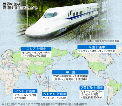 高速鉄道の受注をめぐっては、仏TGVなど欧州勢との競争が焦点。JR東海の小菅俊一技術企画部長は「踏切のない専用線で走る新幹線のシステムは運行の正確性や快適さで優位に立つ」と自信を示す。