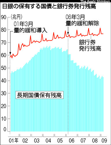 もう一つは、野放図に国債を買い増せば政府の財政規律がゆがみ、急激なインフレを起こしかねないとの懸念だ。日銀は、もとは内部の暗黙の取り決めだった「銀行券ルール」を、量的緩和政策の導入を決めた01年3月の決定会合で、初めて明文化。資金の大量供給に合わせて「国債の買い増しを求める声が強くなるリスクがある」と見て、「防波堤」の役割を担わせようとした。