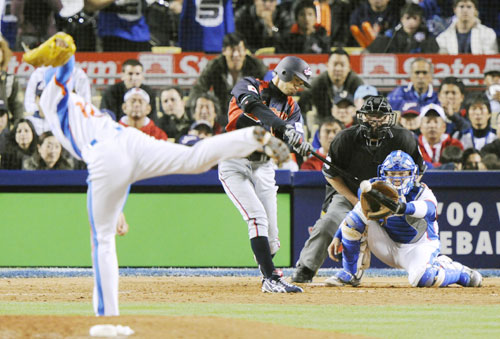 日本は三回、日本戦に2度先発し、2勝を挙げている韓国先発の奉重根投手から小笠原道大内野手(巨人)の適時打で1点を先制。しかし安定感抜群の投球を見せていた先発の岩隈久志投手(楽天)が五回、秋信守外野手(インディアンス)にソロ本塁打を浴びた。